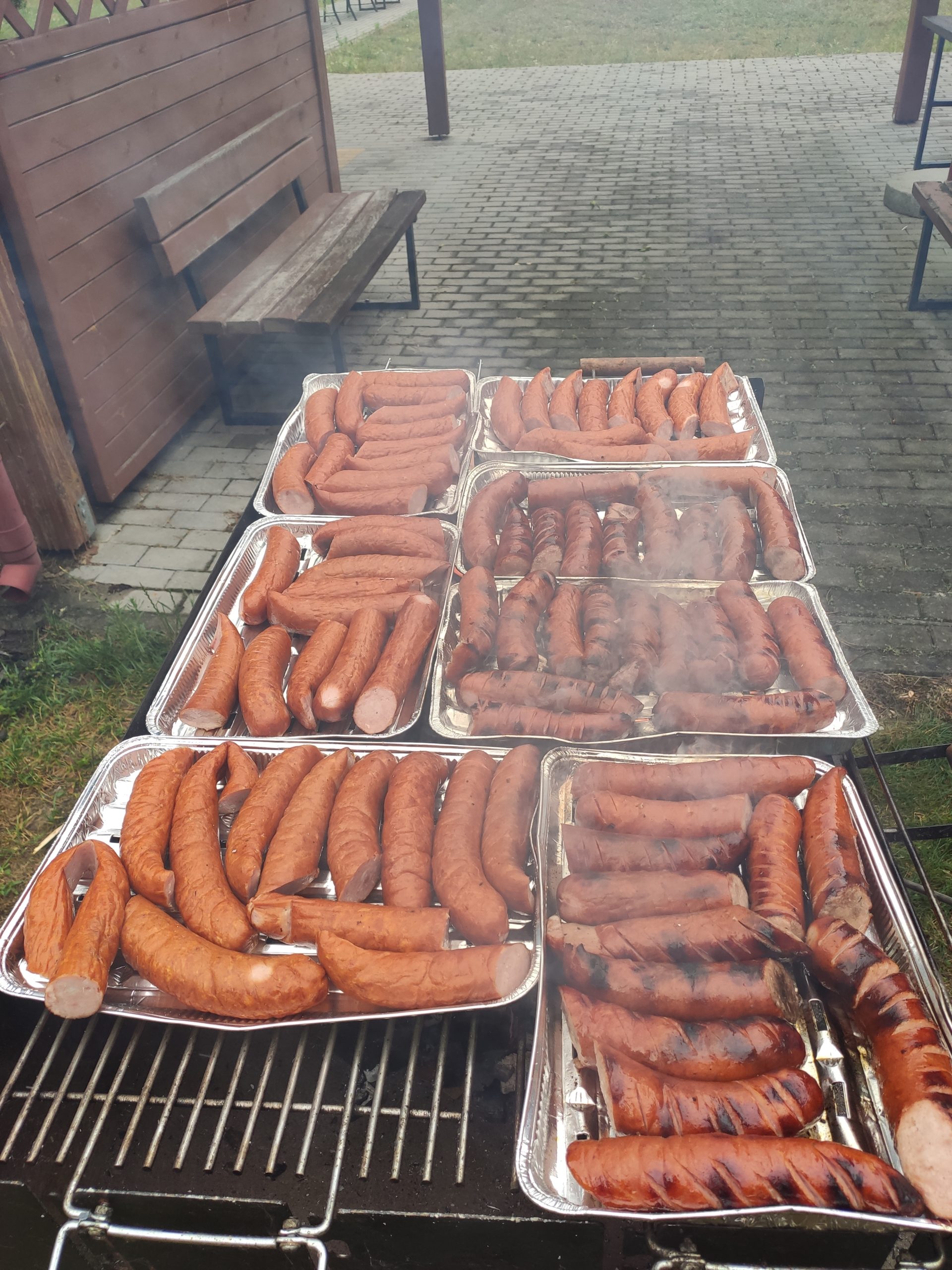 Powiadają, że kobieta zmienną jest. W tym roku można tak powiedzieć o pogodzie, która nas nie rozpieszcza. Jednak mimo deszczu i nie najwyższej temperatury, udało nam się upiec trochę kiełbasek i miło spędzić czas w gronie sympatycznych osób. Mamy to szczęście, że dysponujemy co najmniej jedną dużą jadalnią, która pomieści wszystkich spragnionych pieczonej kiełbasy. A była ona bardzo smaczna! Palce lizać!