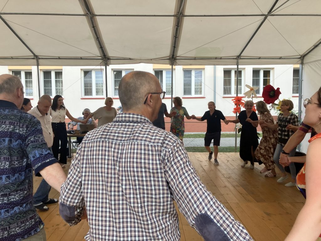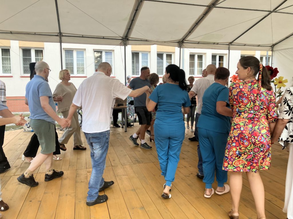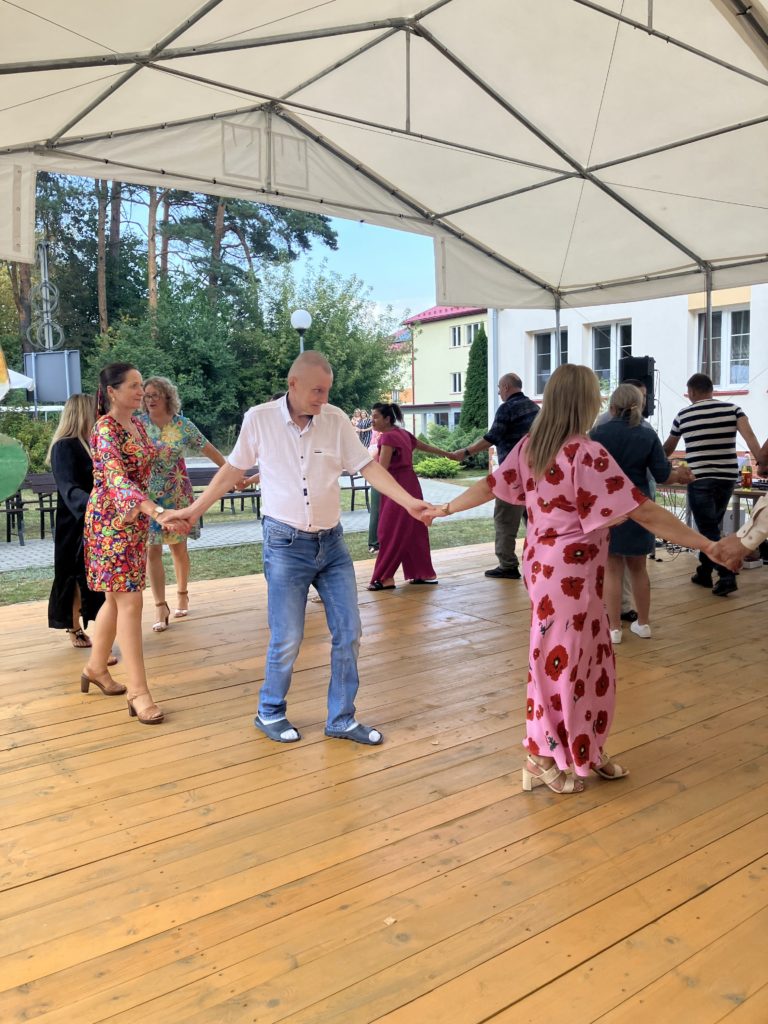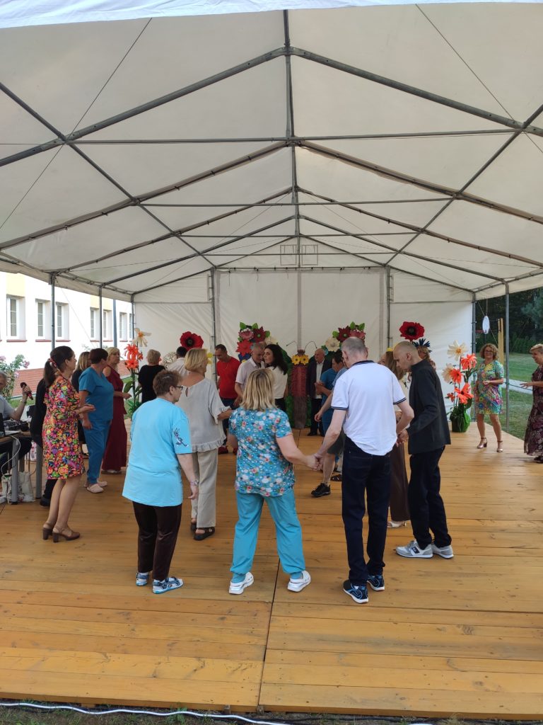 Najbardziej wyczekiwanym punktem programu była jednak zabawa taneczna, która trwała do zmroku. Tutaj bardzo dziękujemy panu Tomkowi – byłemu pracownikowi naszego Domu za wspaniałe prowadzenie tej zabawy. Podziękować musimy również wszystkim licznie przybyłym pracownikom, którzy oprócz zabawy, włożyli ogromny wkład w zorganizowanie tego święta. To przecież dzięki ich składkom członkowskim na rzecz Stowarzyszenia i wspólnej pracy udało się zorganizować nasze małe święto. Dziękujemy również mieszkańcom, którzy swoją obecnością pokazali, że praca dla nich ma sens.