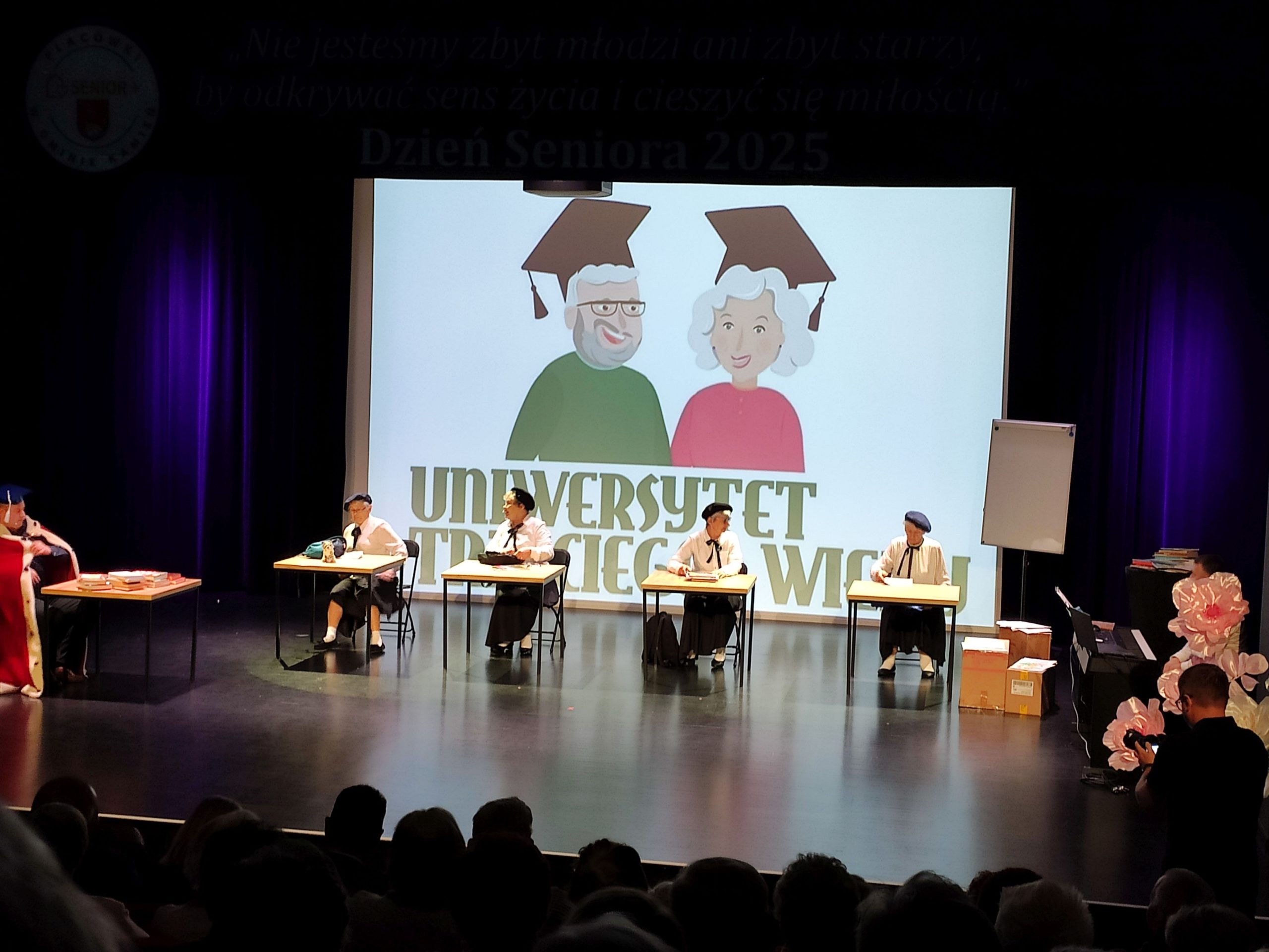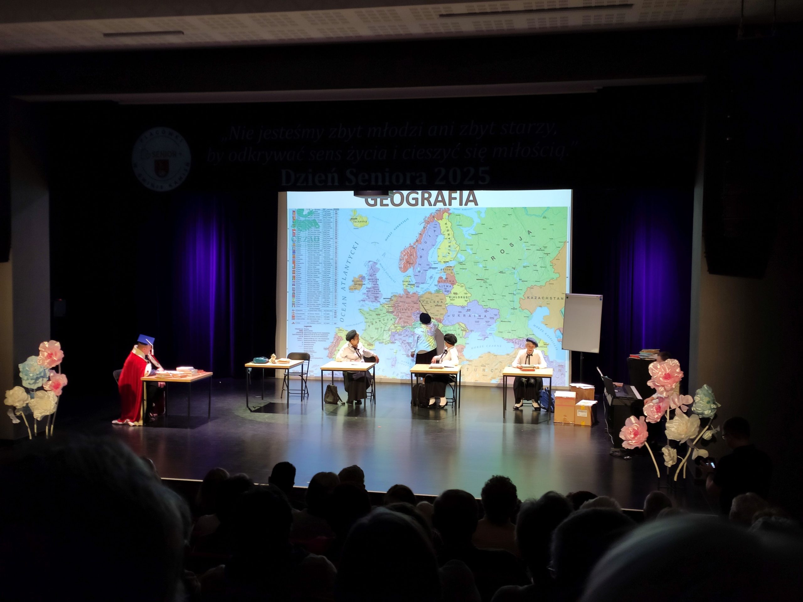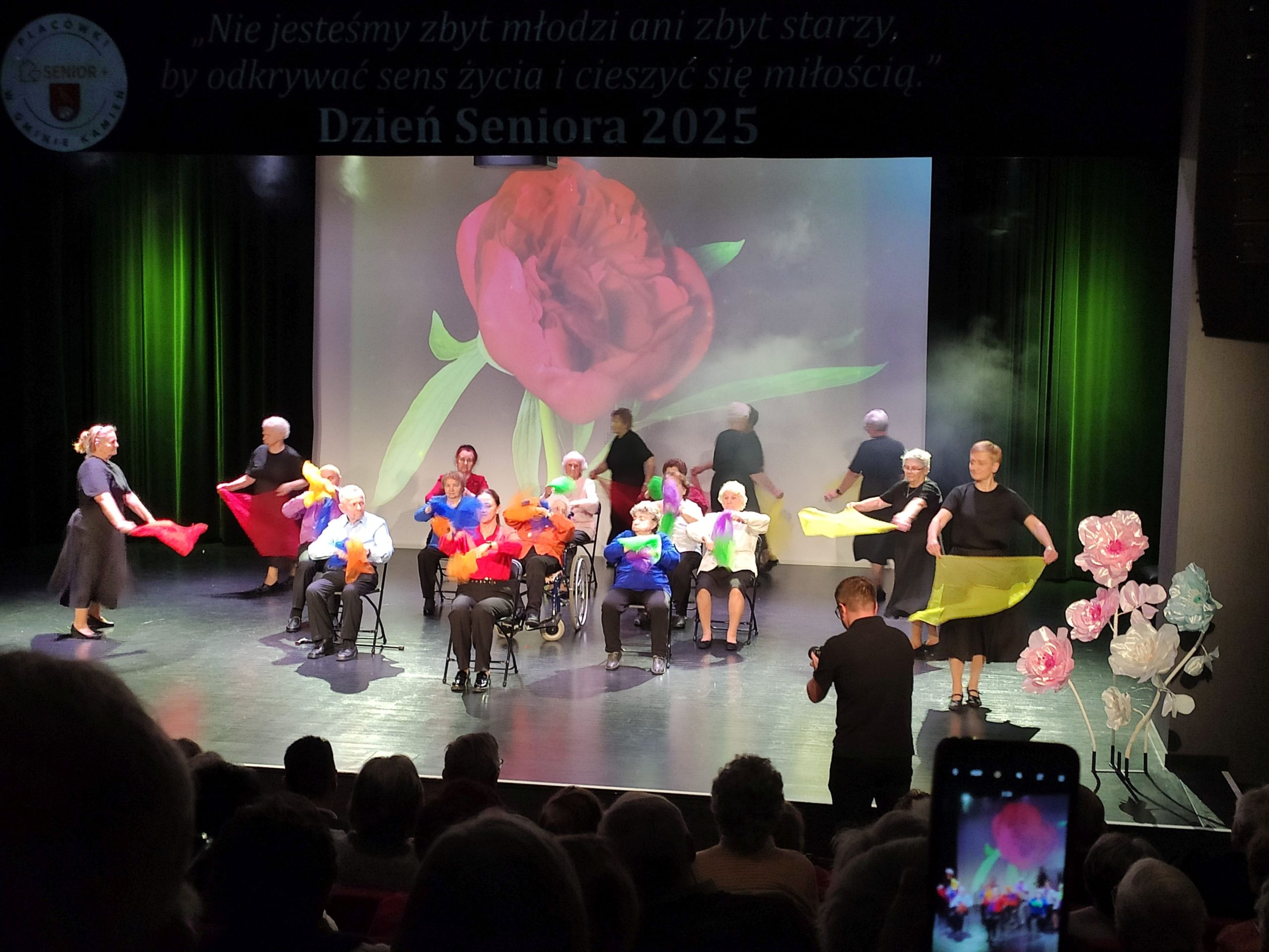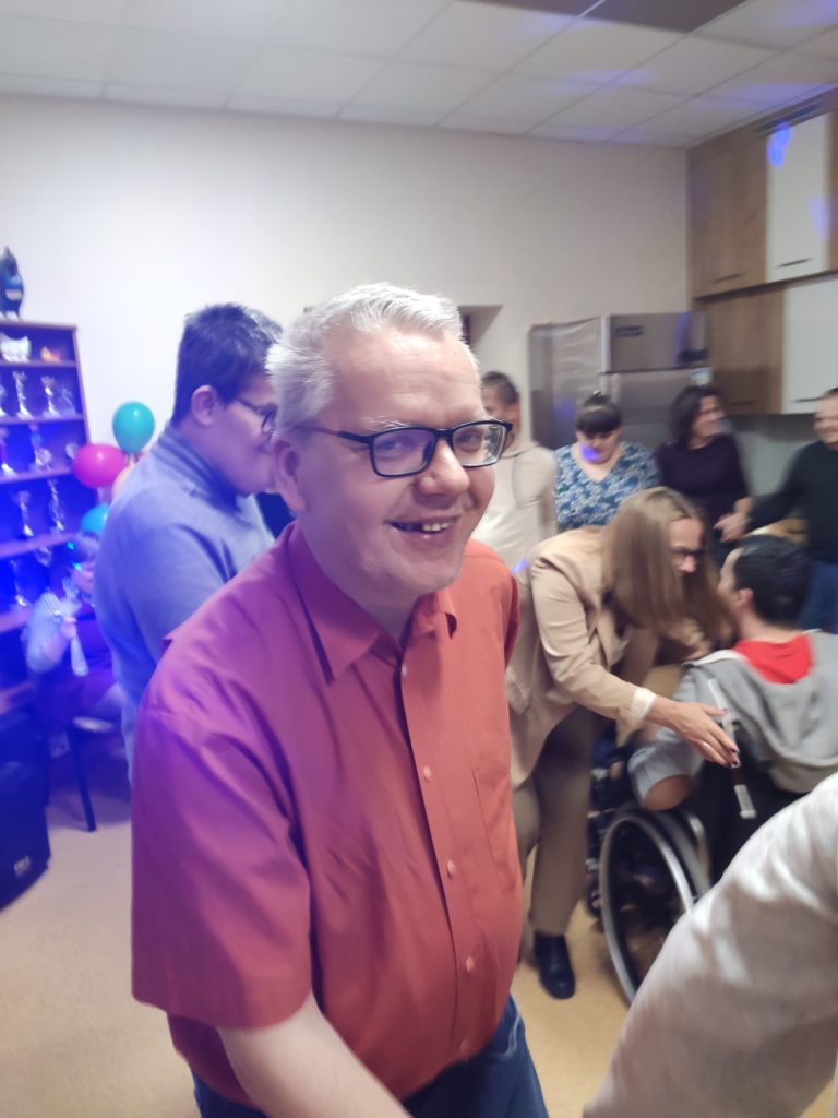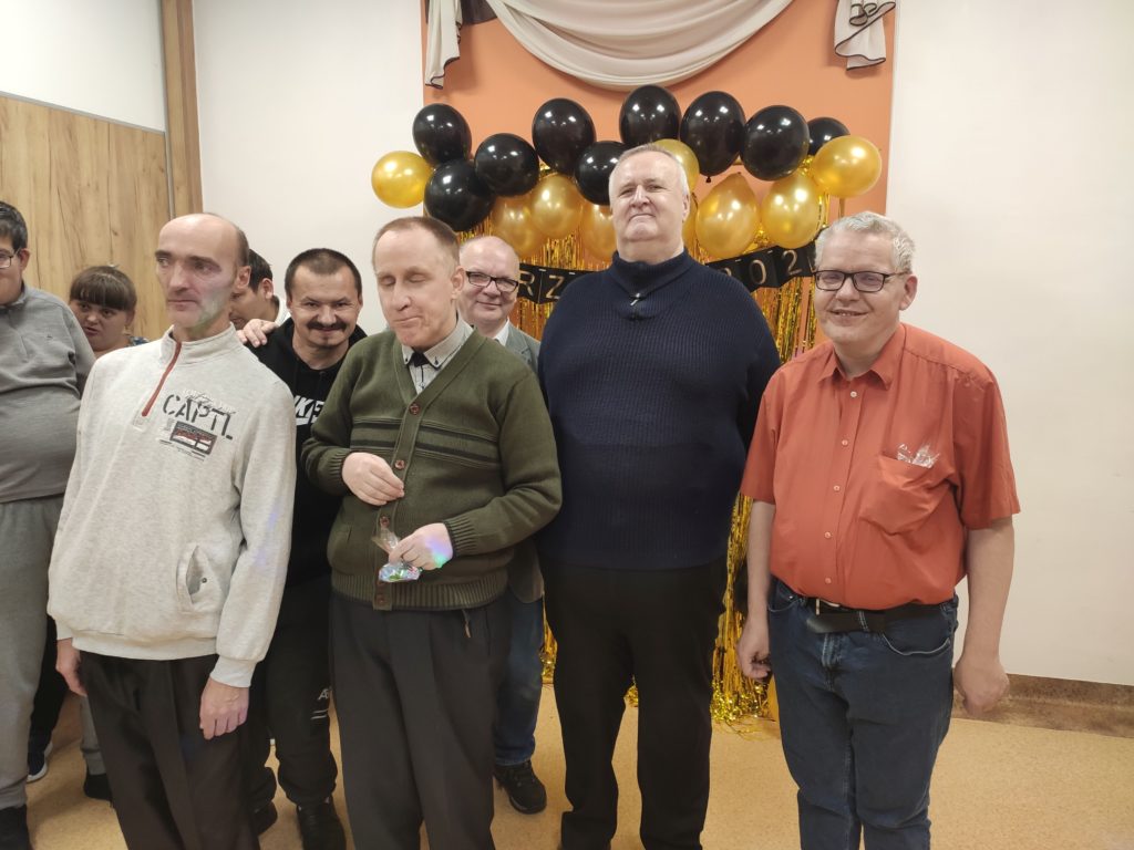 Tego roku spotkała nas bardzo miła niespodzianka: otrzymaliśmy zaproszenie na zabawę andrzejkową organizowaną przez Środowiskowy Dom Samopomocy w Kamieniu. Podzielona na dwie części impreza rozpoczęła się w Centrum Kultury w Kamieniu od występów Klubu Seniora. Występy związane były z obchodzonym w tym samym dniu Dniem Seniora. Urzekło nas poczucie humoru osób występujących w skeczu „Uniwersytet Trzeciego Wieku”! Mimo wieku wykonawców, również pozostałe prezentacje były pełne wigoru i energii.